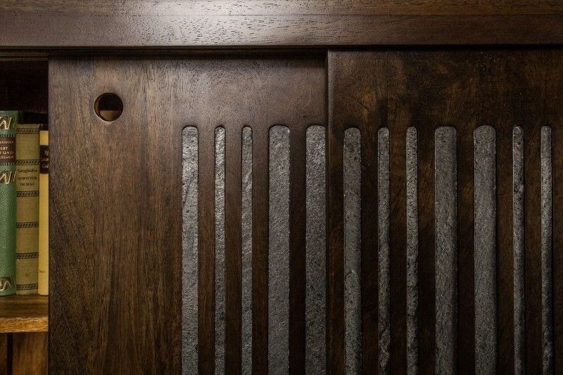 Buffet massif ONYX 160cm marron foncé doré manguier pierres précieuses agate portes coulissantes - 39230