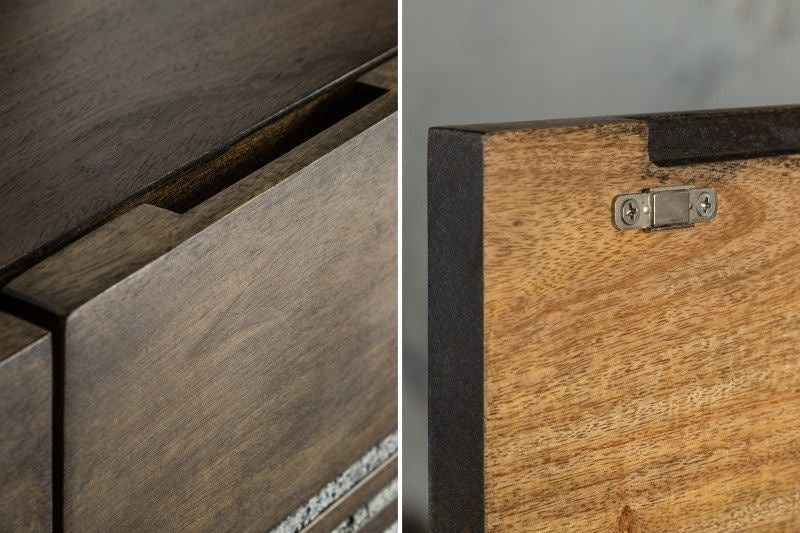 Buffet massif ONYX 120 cm bois de manguier marron foncé pierre précieuse agate structure métal doré - 39231