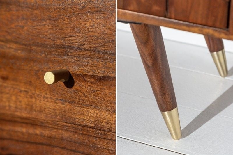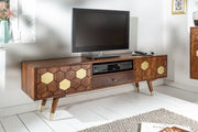 Buffet TV massif MYSTIC LIVING 140cm acacia marron doré design rétro - 39949