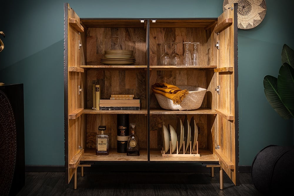 Buffet massif MANDALA 120cm en manguier pieds dorés noir - 41105