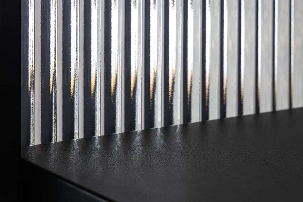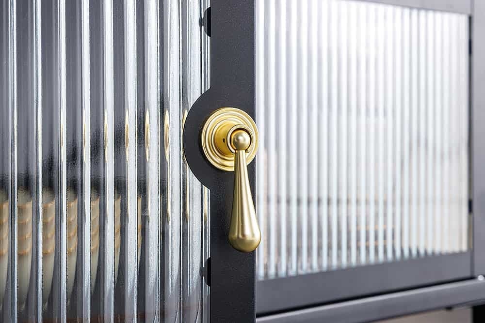 Buffet TV moderne AMSTERDAM 90cm vitrine en métal nervuré noir doré - 43536
