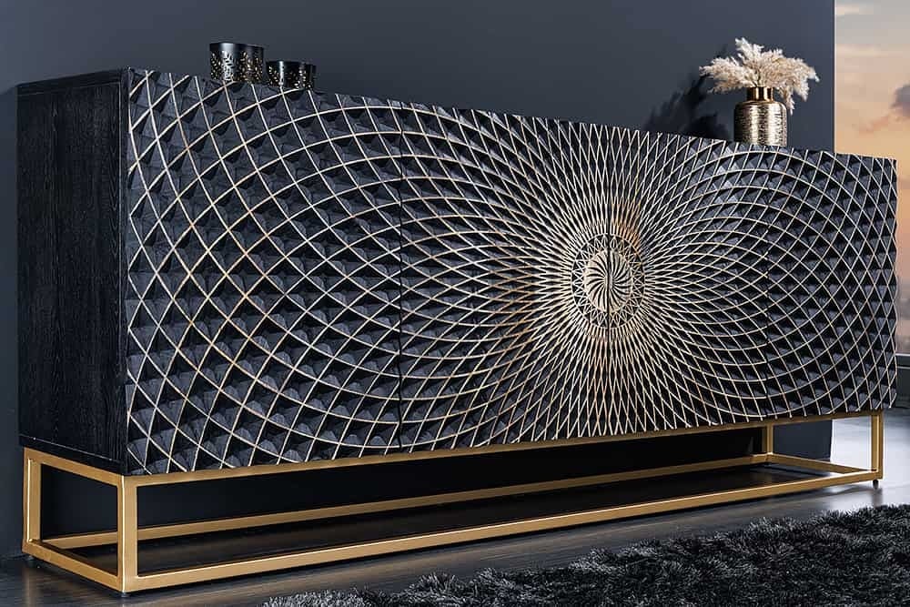 Buffet design ILLUSION 180cm manguier noir bois massif fer doré structure métal - 44320