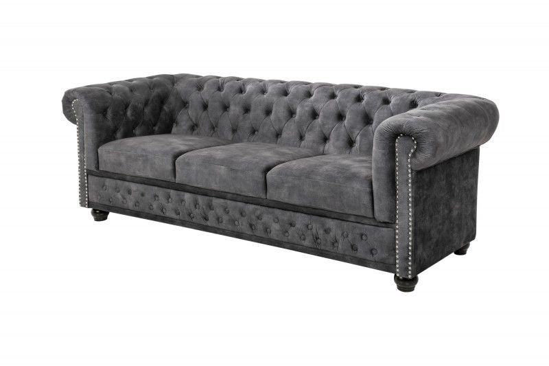 Canapé Chesterfield 3 places 205 cm velours gris avec surpiqûres boutons et âme à ressorts - 41215
