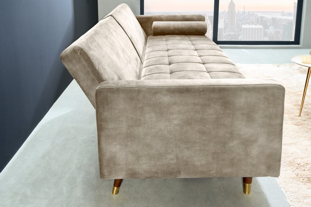 Canapé lit design COUTURE 195cm velours champagne fonction couchage 3 places - 43519