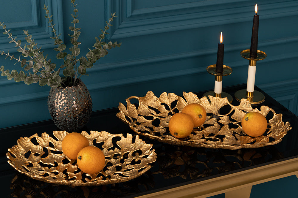 Bol décoratif FEUILLES DE GINKGO 40cm métal doré fait main - 41795