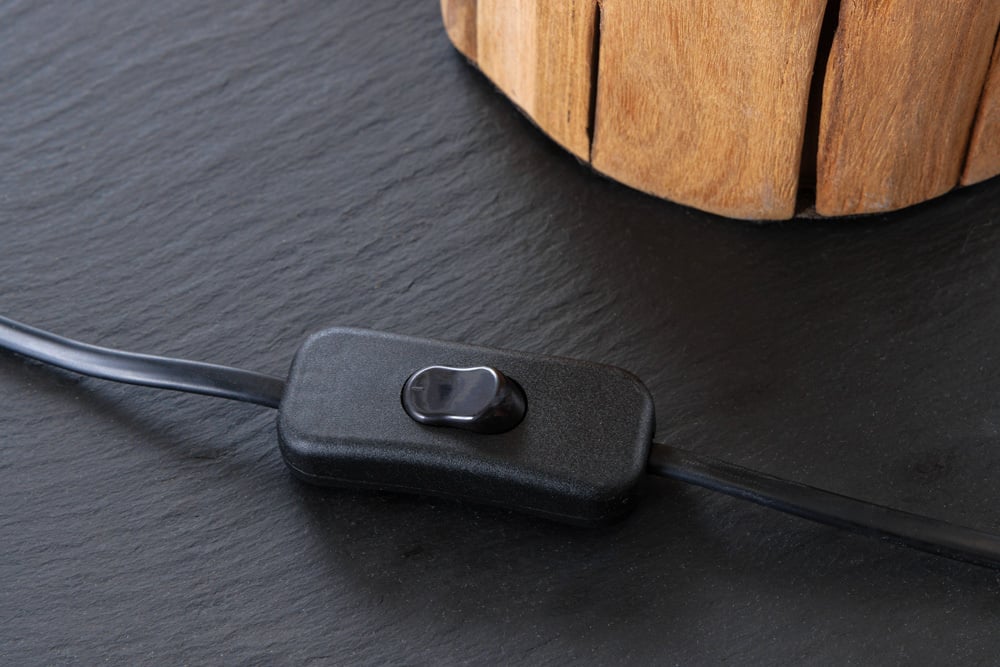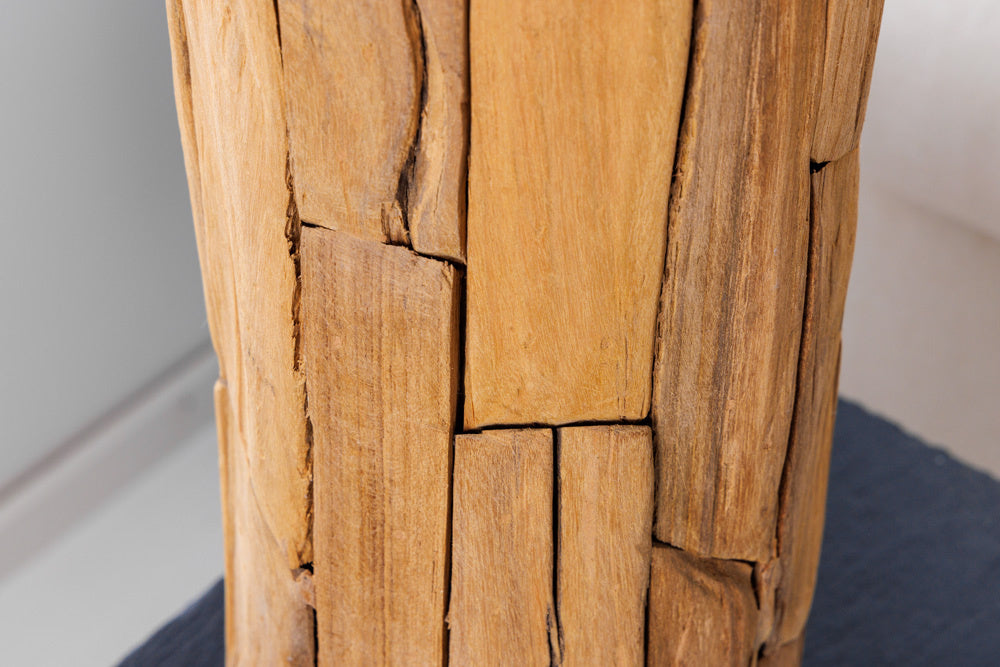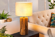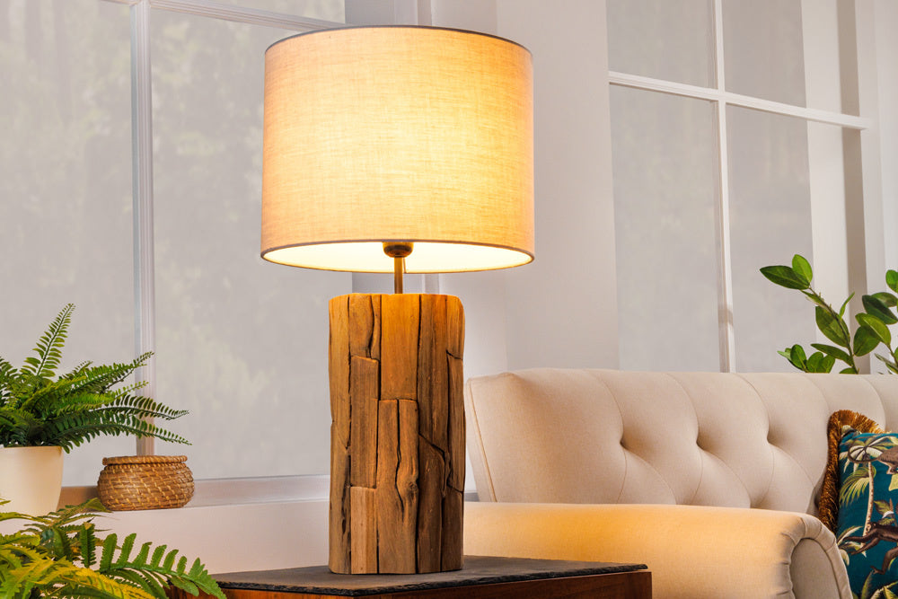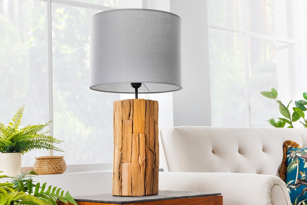 Lampe de table design ROOTS 60cm bois flotté lin abat-jour gris fait main - 39727