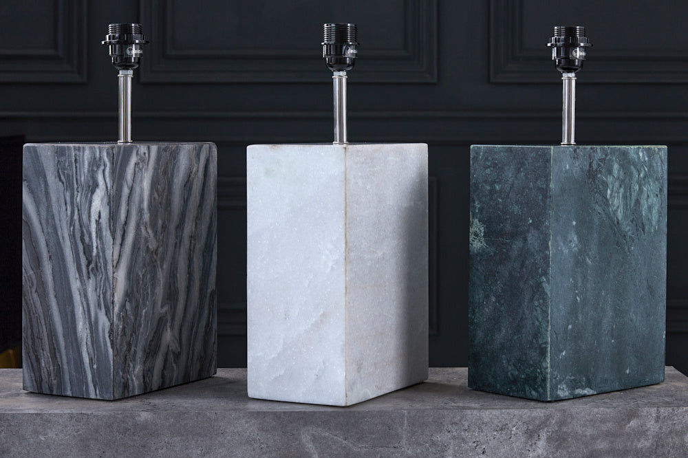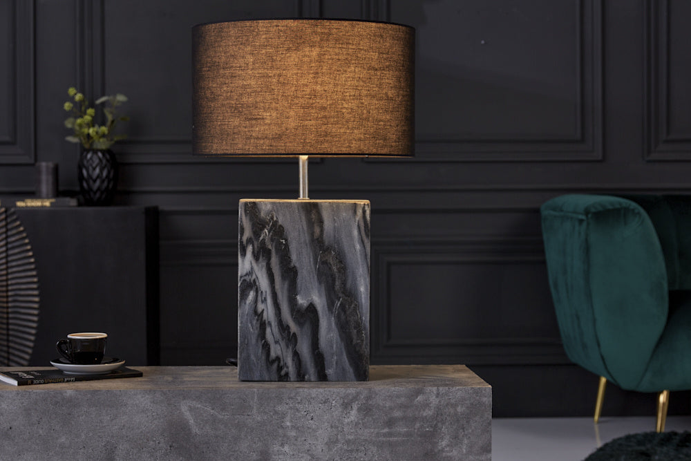 Lampe de table design NOBLE 55cm pied en marbre noir abat-jour en tissu - 40901