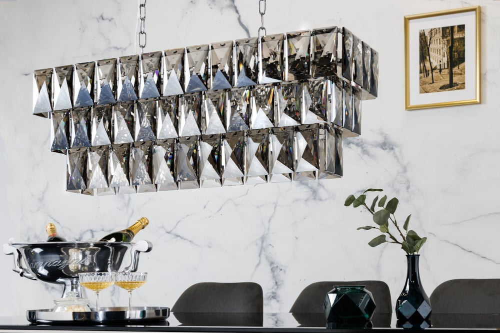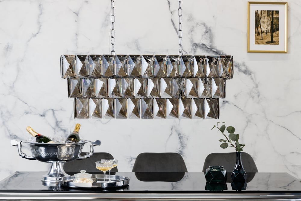 Lampe à suspension de luxe CRYSTAL 90cm lustre design gris noble prismes en verre - 42810