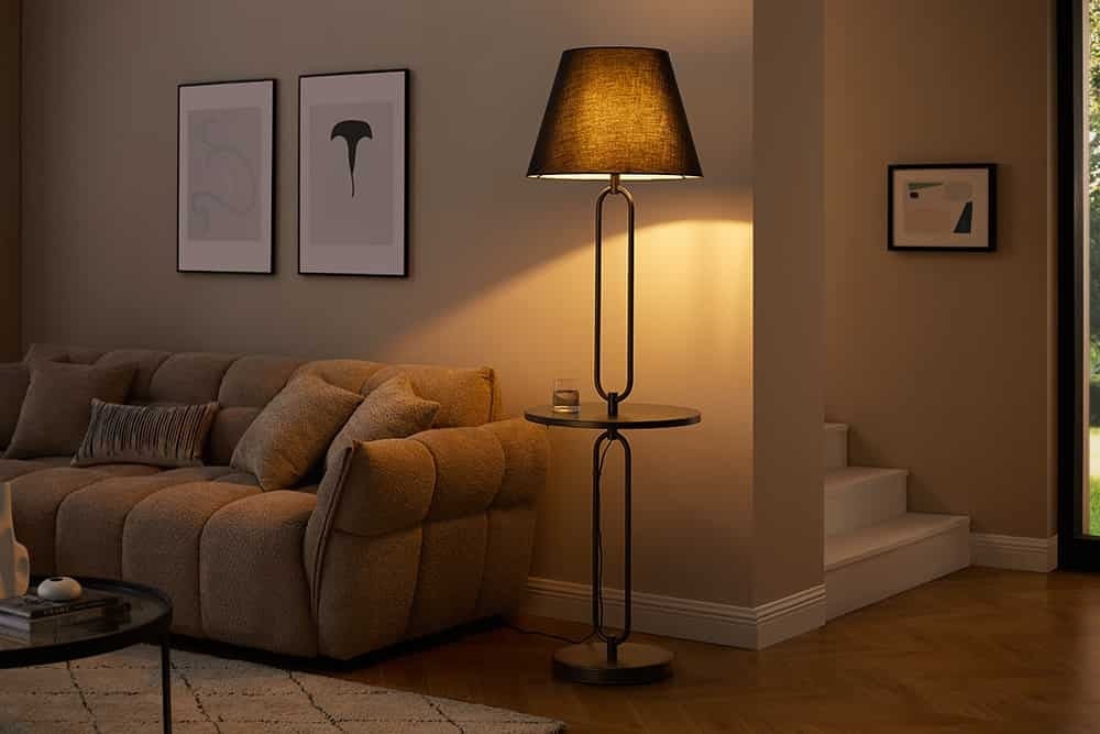 Lampadaire moderne table d'appoint SERVANT 175cm métal noir rond - 43759