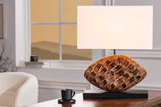 Lampe de table design REEF 50cm en bois d'acacia massif fait main abat-jour en coton blanc - 43929