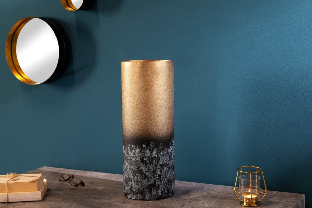 Vase décoratif ABSTRACT 40 cm métal doré patiné fait main - 42240