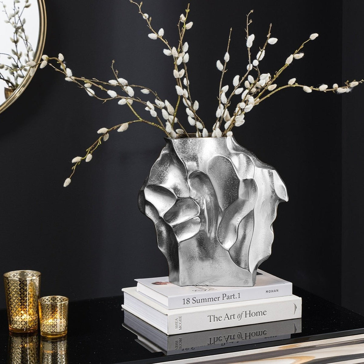 Vase LIQUIDE 30cm marteau effet marteau argent - 44877