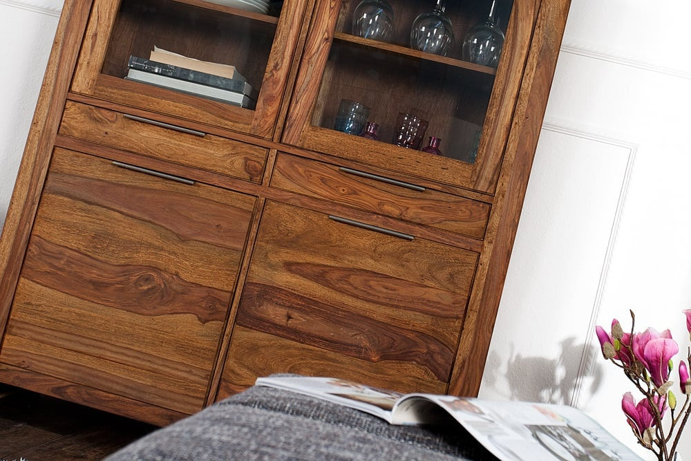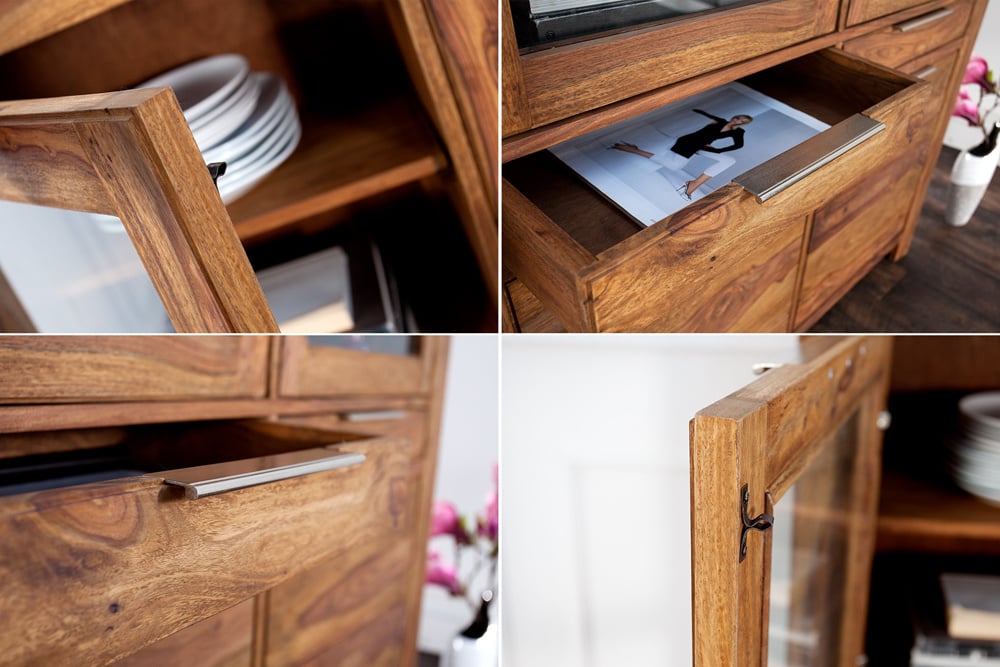Massives Buffet haut PURE 140 cm finition pierre Sheesham Vitrine Palissandre - 22685