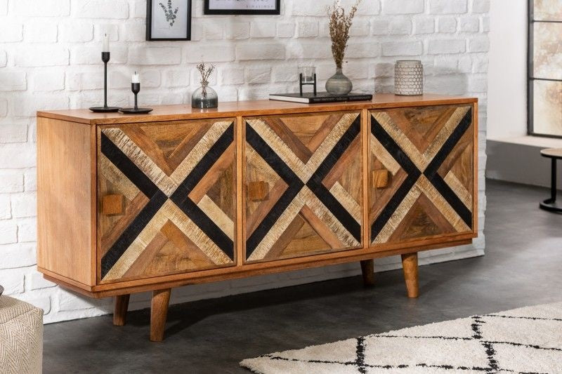 Buffet élégant LONG ISLAND 160cm aspect manguier avec motif rétro - 40053
