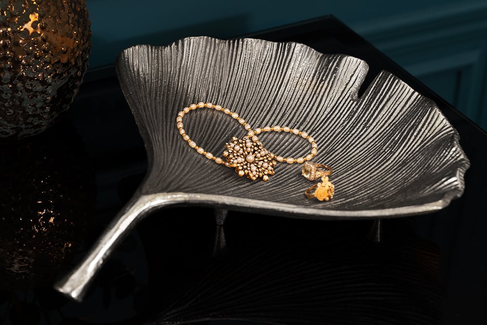 Bol décoratif GINKGO 33cm métal argenté fait main - 41778