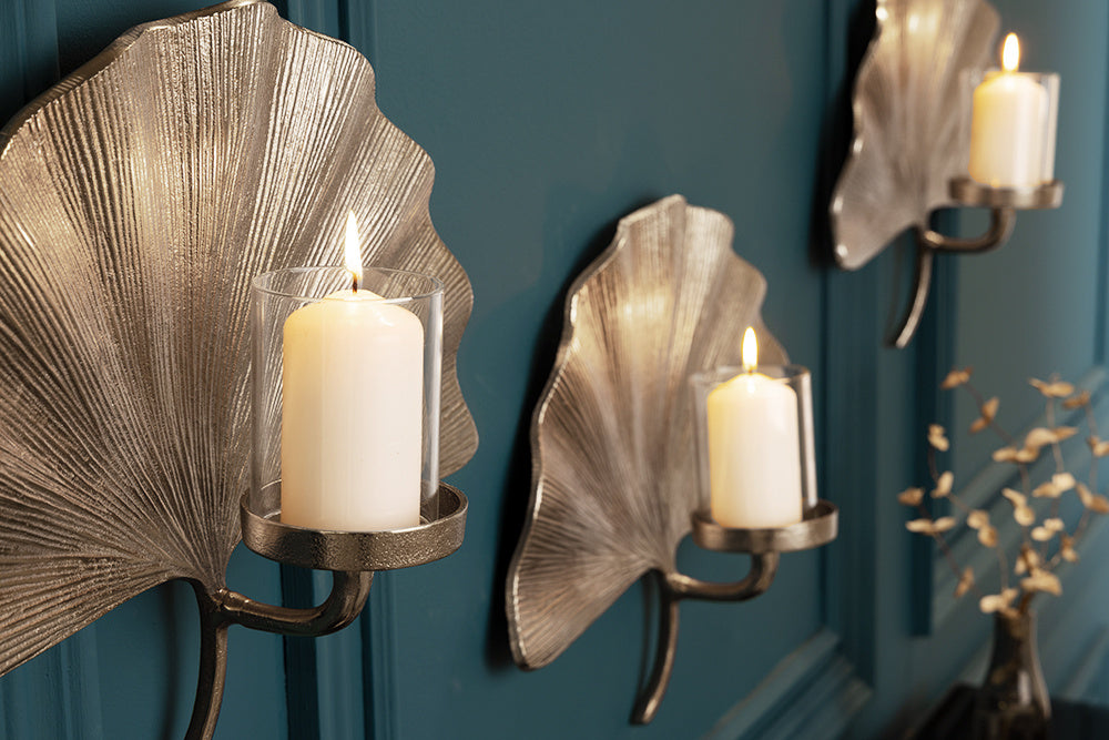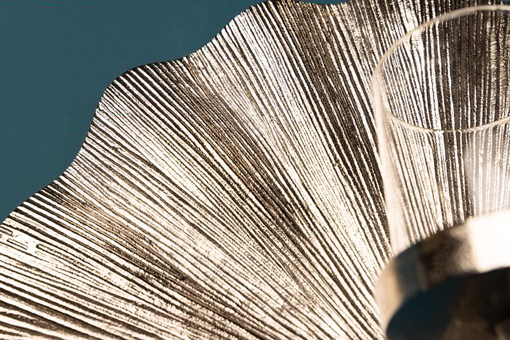 Bougeoir décoratif GINKGO 44cm photophore en métal argenté fait main pour le mur - 41782