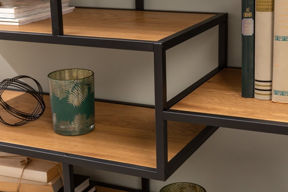 bibliothèque industrielle SLIM LINE 114cm chêne sauvage noir cinq étagères - 42020