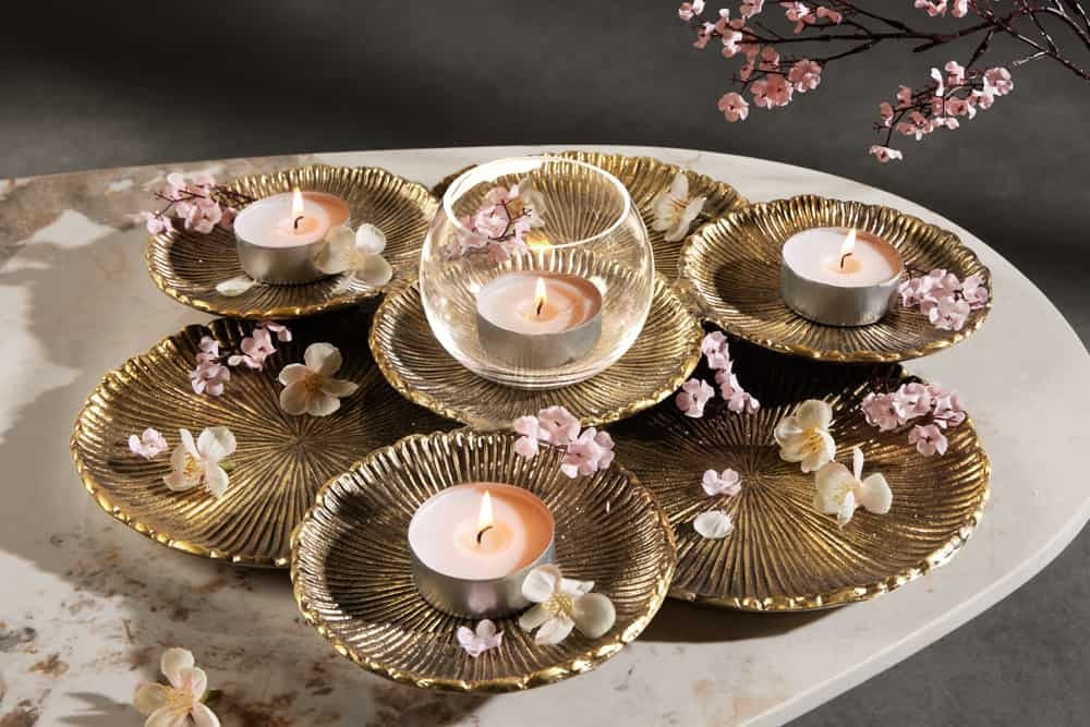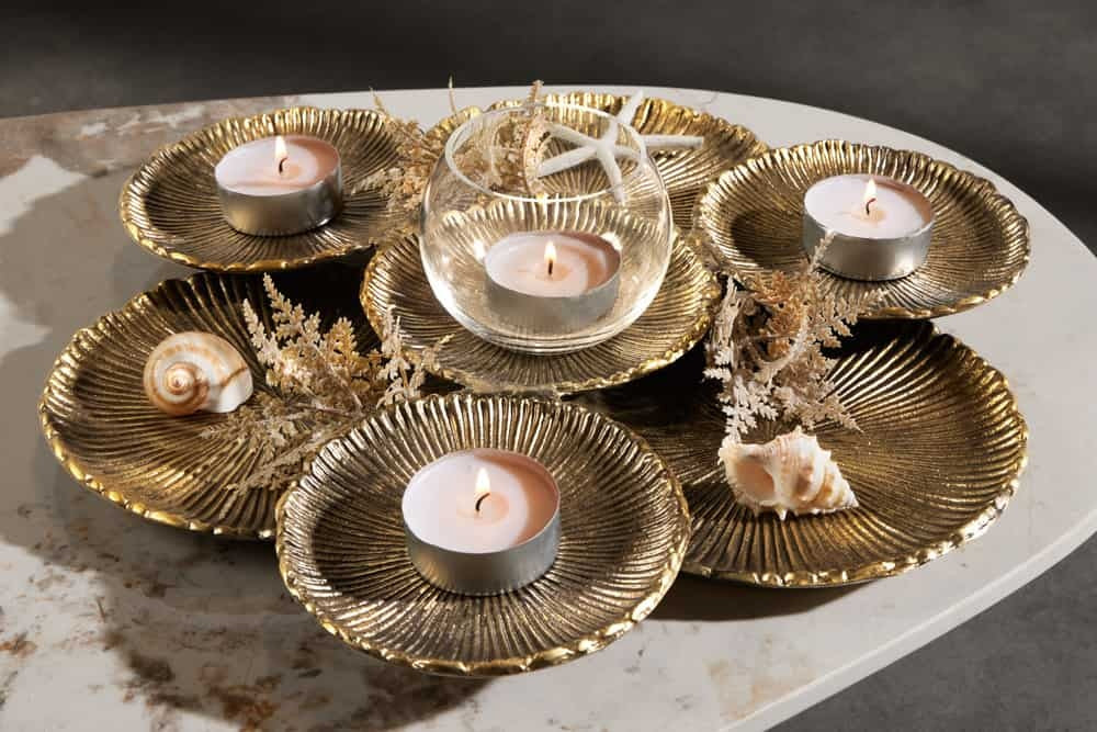 Bol décoratif XXL fait main ABSTRACT LEAF 45cm plateau à bijoux en aluminium métal doré - 43292