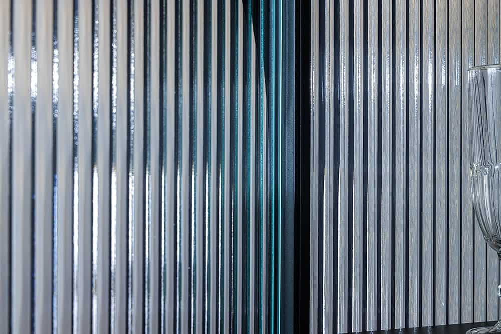Vitrine moderne PARIS 180 cm meuble haut en métal nervuré noir doré - 43330