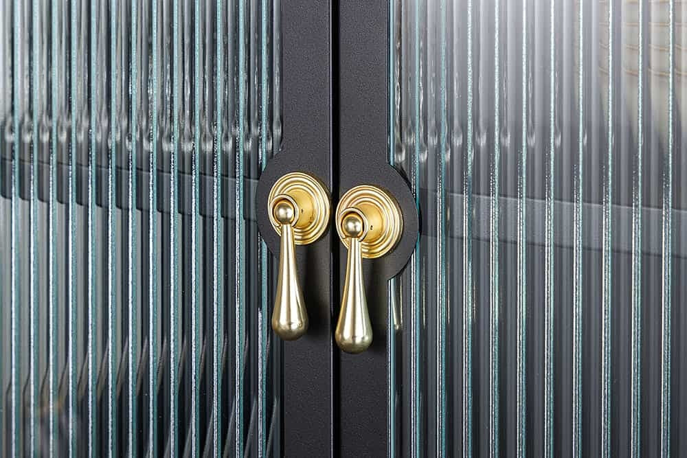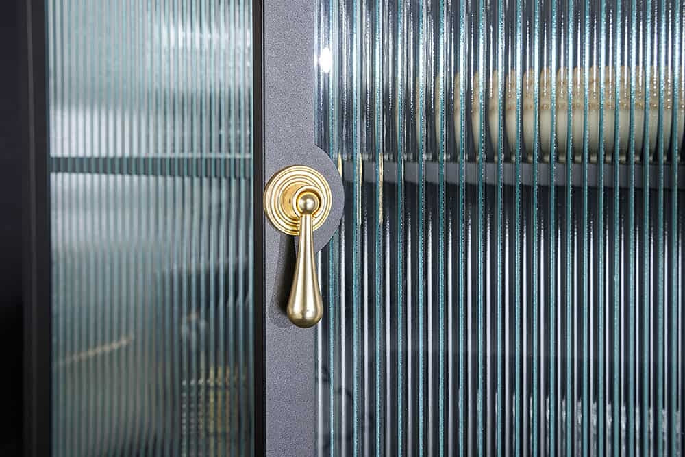 Vitrine moderne AMSTERDAM 160cm meuble haut en métal et verre nervuré noir doré - 43533