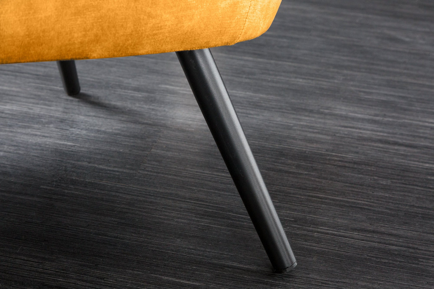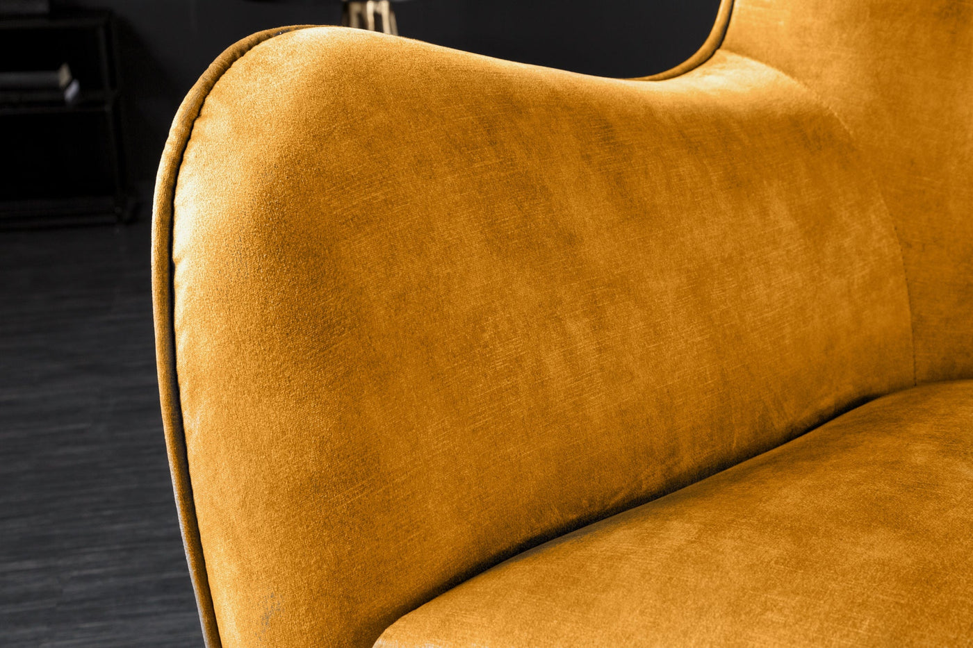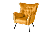 Fauteuil à oreilles AMSTERDAM velours jaune moutarde pieds métal noir - 44484